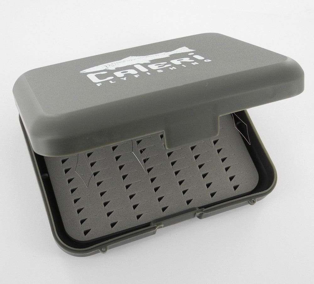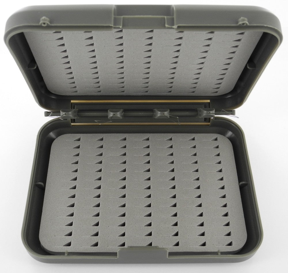 Boite à mouche 2 face avec 4 passe mouche intégrés, vous pourrez préparer à l'avance vos imitations sur le passe mouche.