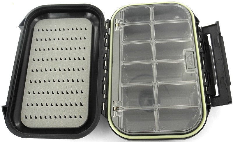 Cette boite à mouche étanche vous permettra de ranger à la fois vos mouches sèches ainsi que vos nymphes, mouches noyées ou encore streamer sur la partie foam à encoches