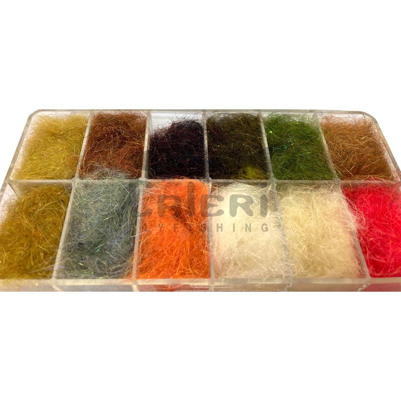 Dubbing à utiliser pour monter des corps et thorax de nymphes comme l'option Squirrel Thorax et Squirrel Abdomen (dans la boite #1), pour former les tags (Minnow Gills, le rouge de la boite #2), des gammares avec les options Crayfish (boite #2) et Scud and Shrimp (boite #1).... aussi une superbe choix pour les noyées !