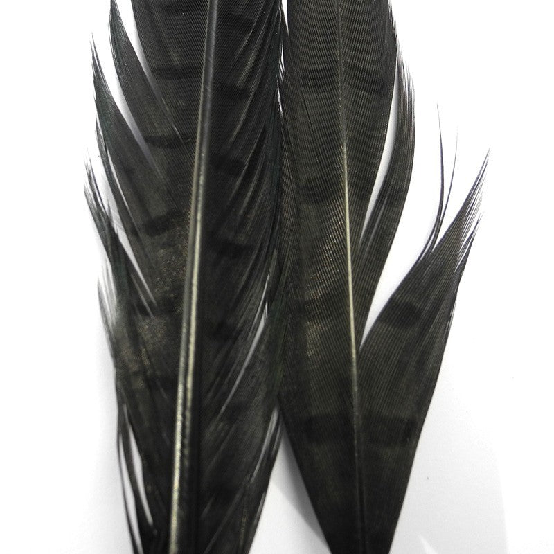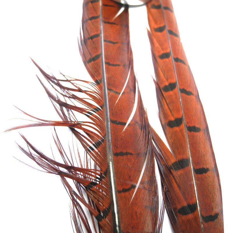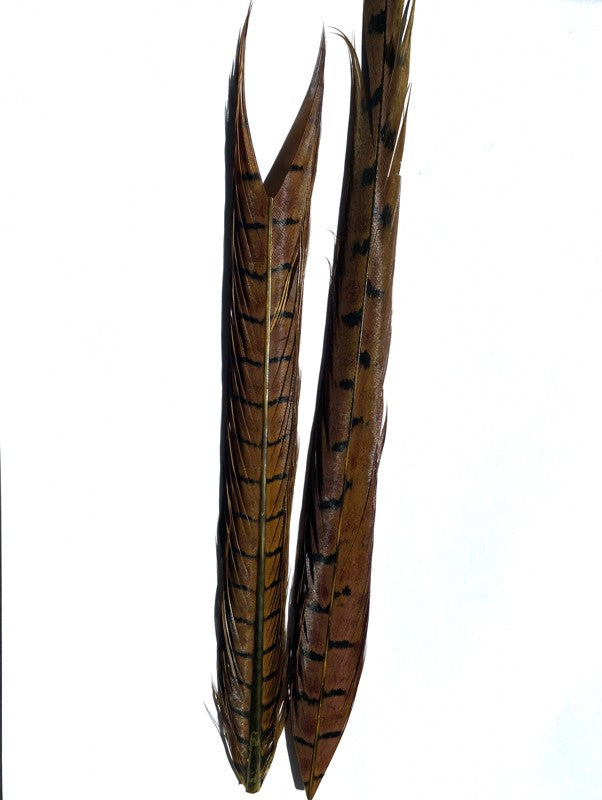 - Portions centrales de plumes de faisan d'une vingtaine de centimètres chacune