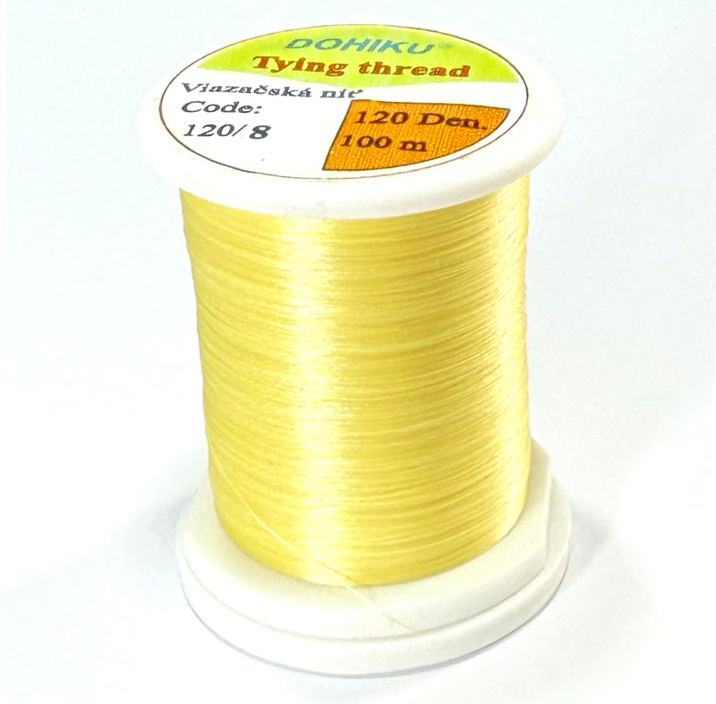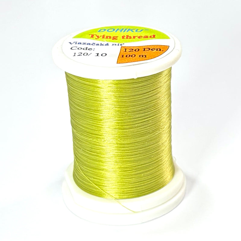 Le fil Dohiku 120 deniers combine résistance et douceur d’enroulement, idéal pour la plupart des montages : sèches, nymphes ou émergentes.