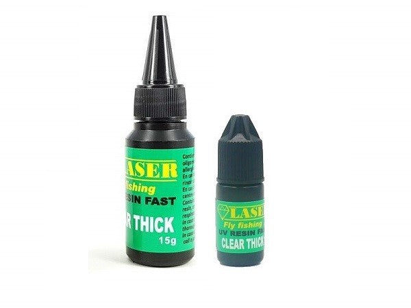 Deux options pour la résine transparente : THICK (plus épaisse) et CLEAR (plus fluide) et disponibles en 5 et 15gr en version transparentes CLEAR Thin et Thick