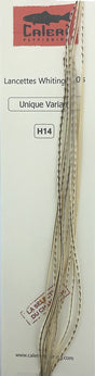 Ces plumes de coq Whiting ont toutes les qualités, un rachis très fin et sans duvet qui facilite l'enroulement, des fibres raides et brillantes qui assurent flottabilité et qualités pêchantes.