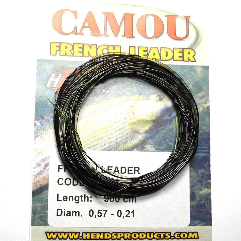 Bas de ligne sans nœud fabriqué à partir de monofilament camoufil, connu pour sa très bonne élasticité et son absence de mémoire après l'avoir chauffé entre ses doigt.