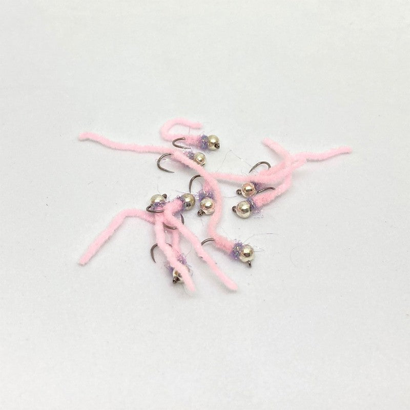 Le worm "Candy Worm" c'est une nymphe montée en bille de tungstène fendue couleur argent, hameçons C124BL+ et corps en chenille Fly Box.