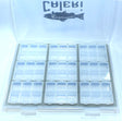 Cette boite de rangement est très polyvalente, avec ses 54 cases à ouvertures individuelles (9X6 cases), on peut y ranger billes, hameçons, dubbing et autres, on peut même s'en servir comme boites à mouches sèches car il s'agit bien de 9 parties indépendantes comportant 6 cases chacune.