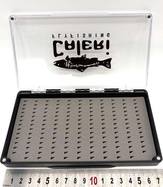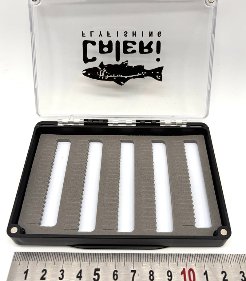 Vous pourrez y stocker une grandes variété de mouches de tous types et de toutes tailles que se soite de sèches, nymphes, streamer, boobies, blob ou autres mouches noyées