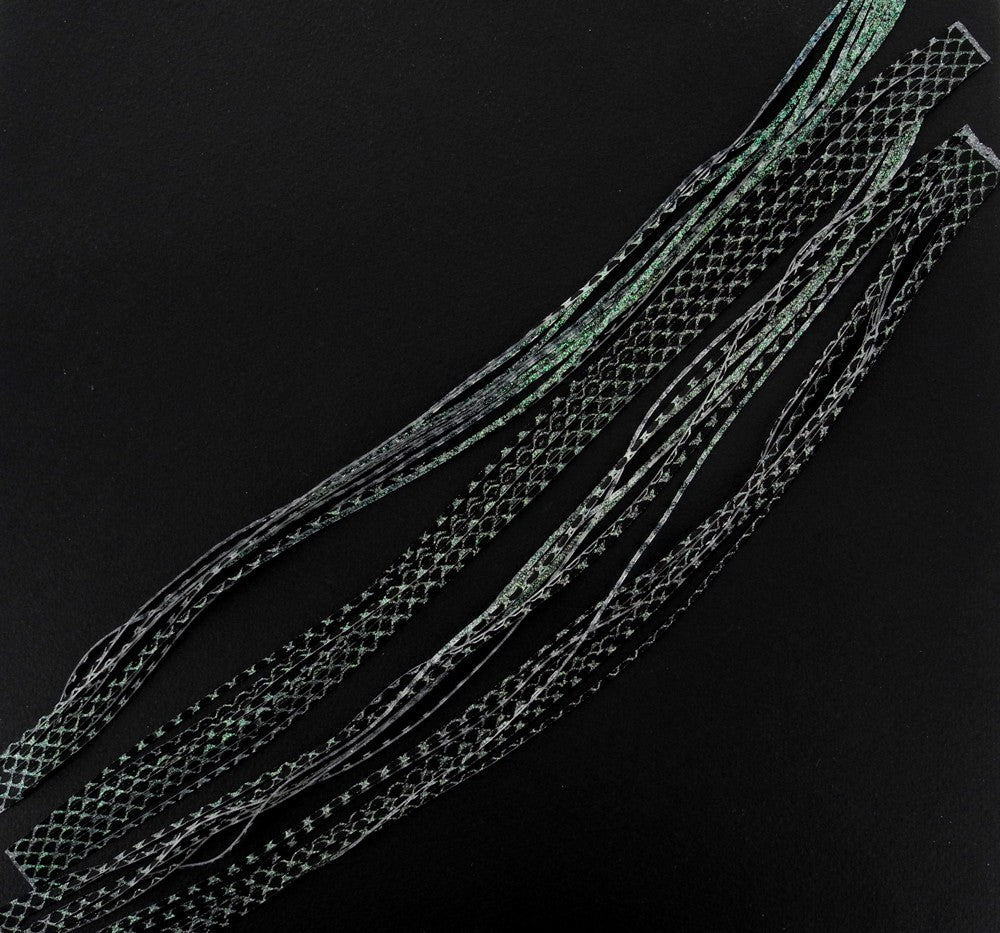 Elastique longs, fins, plats, très mobiles à intégrer au montage de vos mouches à brochet, black bass et autres prédateurs d'eau douce ainsi que marins