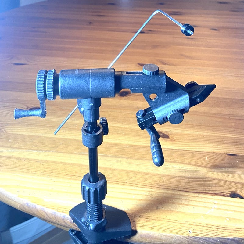 Le support de bobine est très pratique et polyvalent, il peut servir de parachute. Il suffit de le retourner sur la tige de l'étau, de serrer les écrous et les boulons en position basse, puis de relever le bras à la position haute souhaitée.