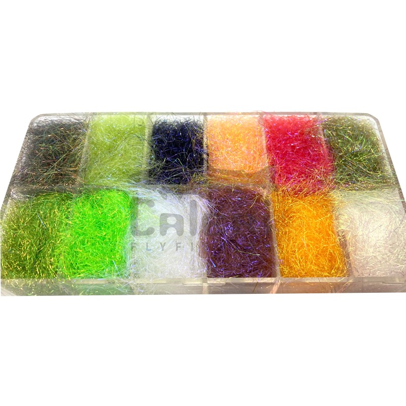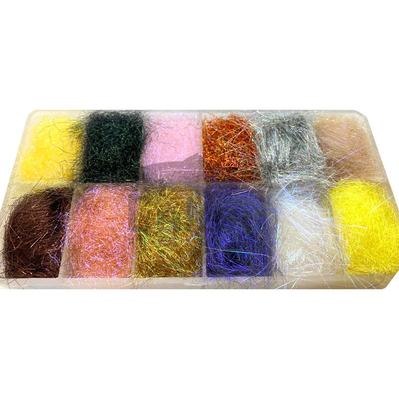 Trout Ice Dubbing (DUB25) - Couleurs : Caddis Green, Chocolate Brown, UV Cinnamon, UV Lt. Olive, Pearl, UV Lt. Yellow, Olive, Peacock, Peacock Black, Rustry Brown et UV Tan.