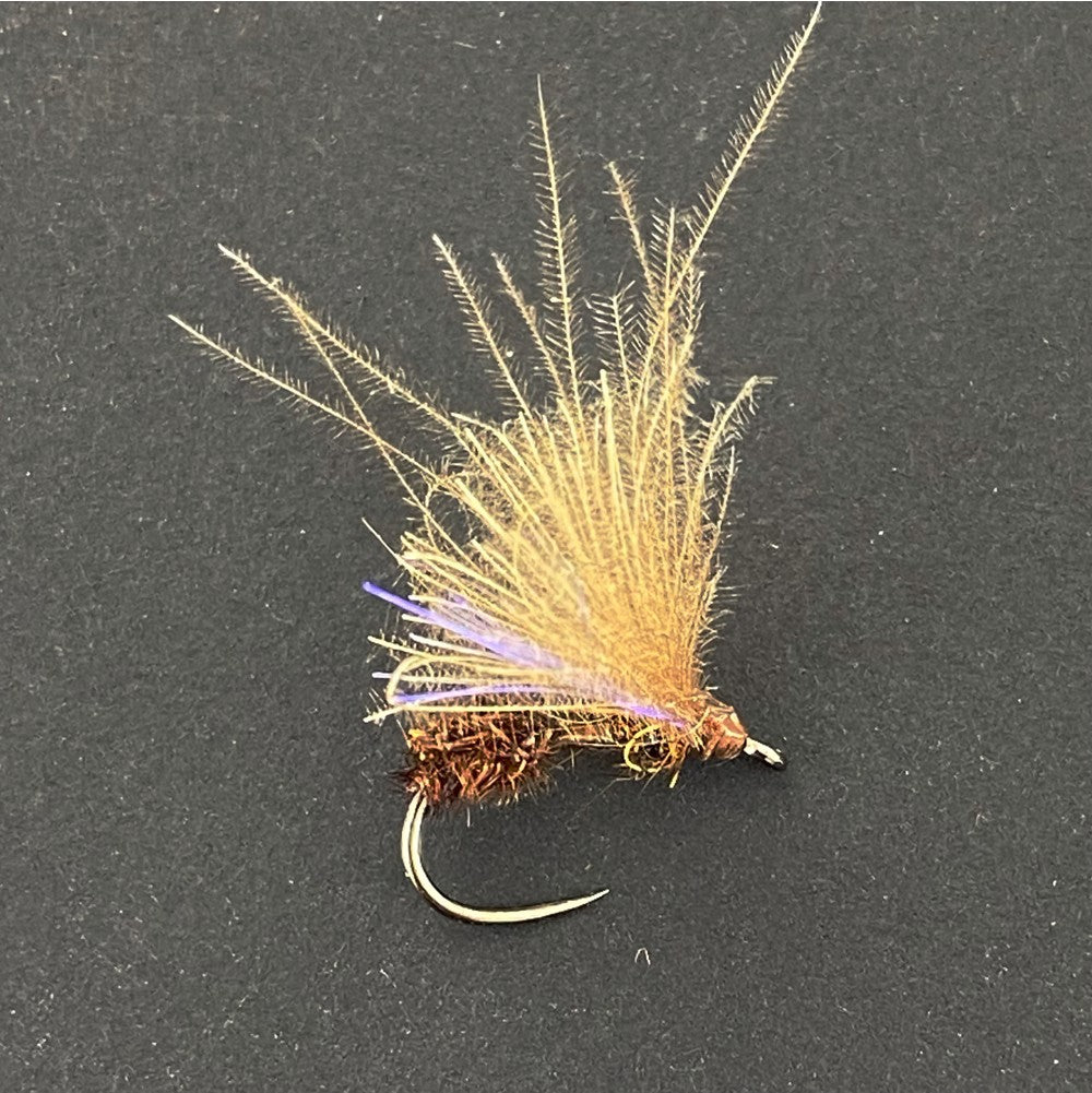 La fourmi brune CDC pêche bas sur l'eau tout en étant visible grâce à ses ailes en cul de canard (CDC), quelques fibres brillantes bleutées pour donner un plus en terme d'attractivité, un must qui sera utilisé avec encore plus de succès en été et à l'automne.